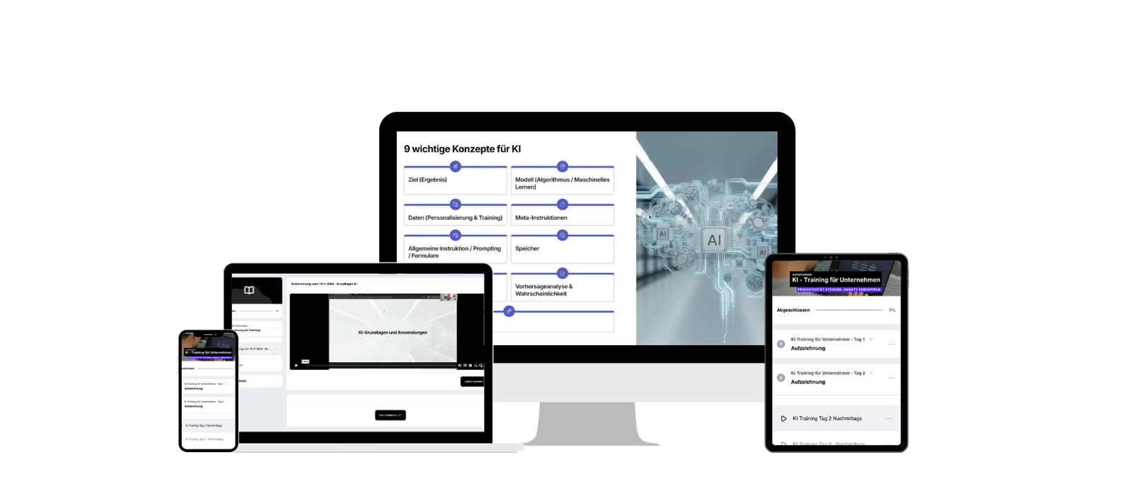 Zusätzlich zu den Live-Calls bekommst du Zugriff auf ein KI-gestütztes Coaching-System, das dich zwischen den Sessions begleitet – genau dort, wo Menschen normalerweise aussteigen.